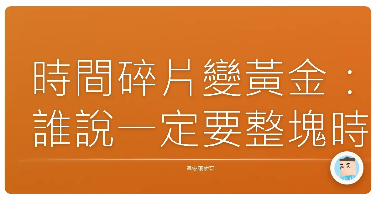 這才讓我驚覺,不是時間不夠,而是我根本沒有好好利用那些被我忽略的「時間碎片」。
